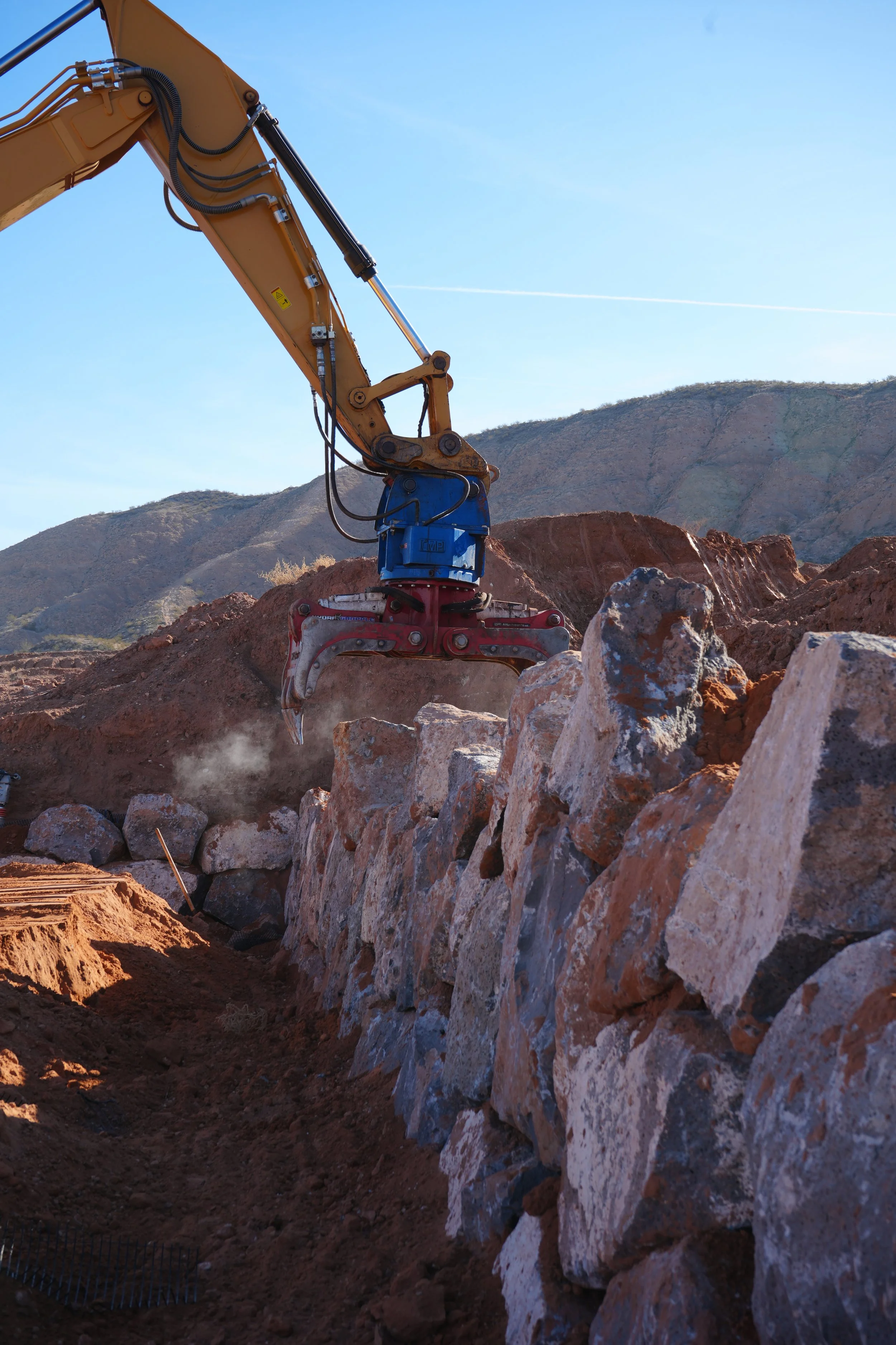 This is our specialty because we have set ourselves up with customized attachments to be able to create any type of rock or block retaining walls. With these attachments were able to stack a higher quality wall in a fraction of the time, saving the customer money while still giving them the quality they deserve and expect.
